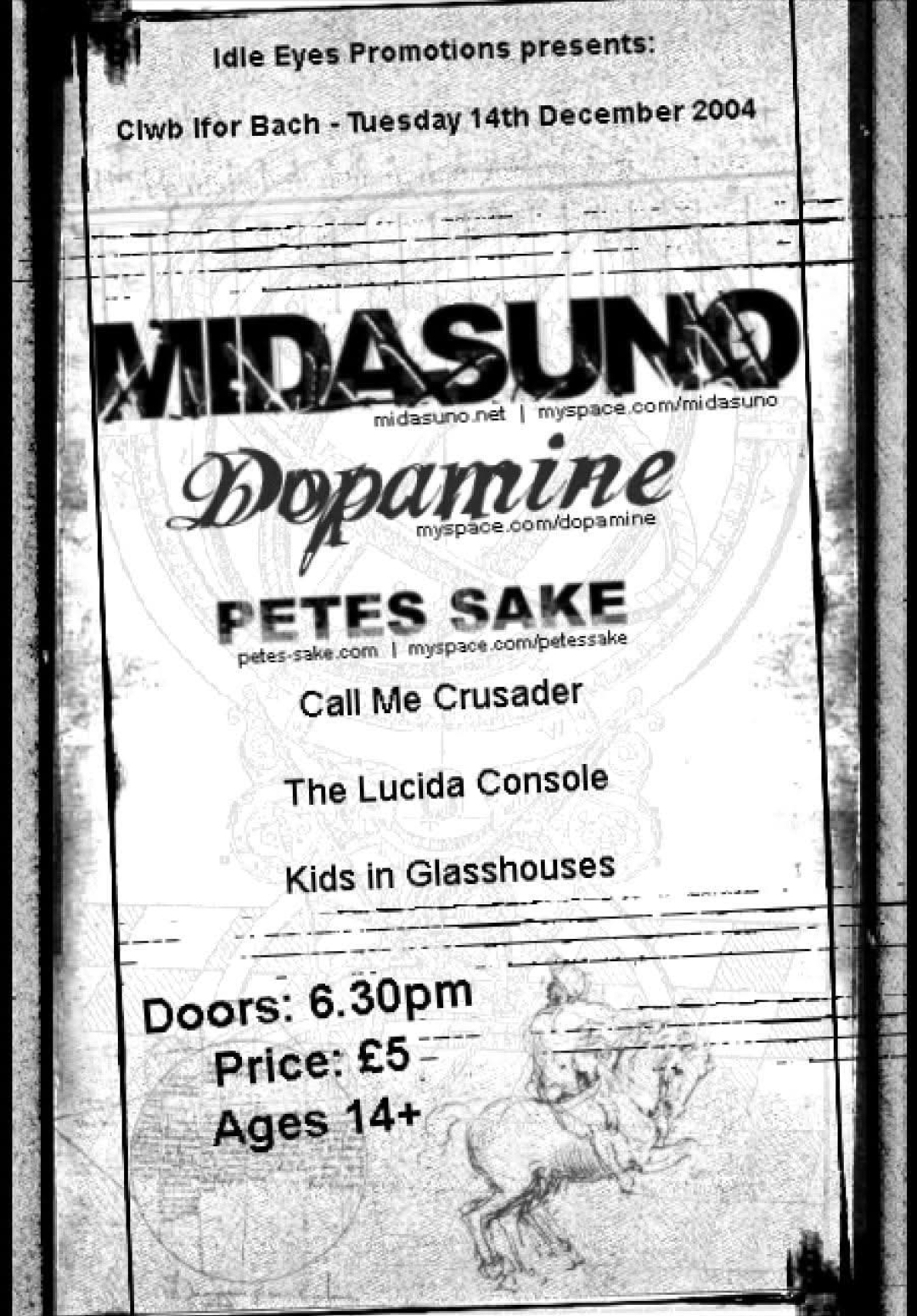 Midasuno • Dopamine • Petes Sake • Call Me Crusader • The Lucida Console • Kids In Glass Houses