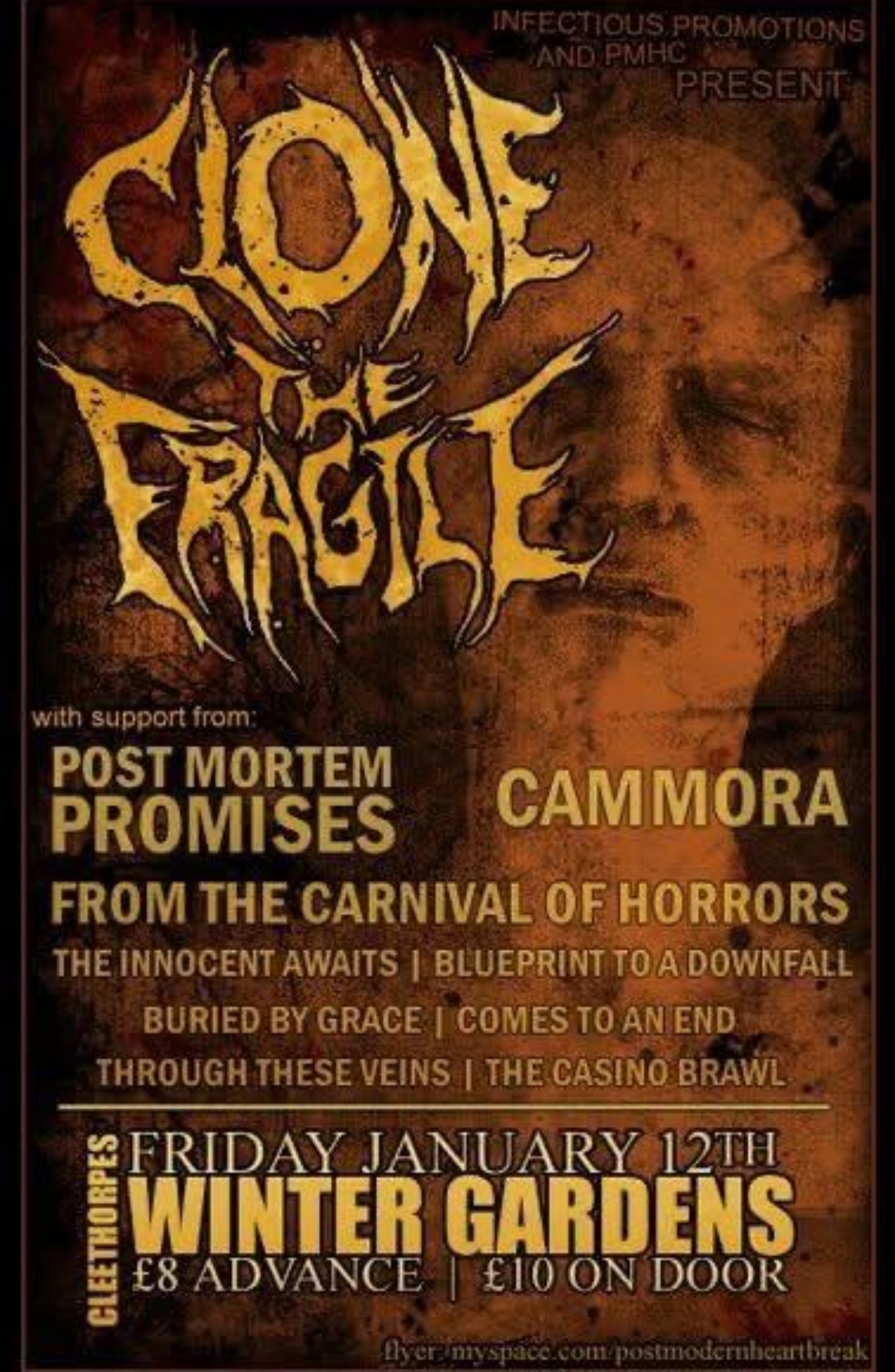 Clone The Fragile • Postmortem Promises • Camorra • From The Carnival Of Horrors • The Innocent Awaits • Blueprint To A Downfall • Buried By Grace • Comes To An End • Through These Veins • The Casino Brawl