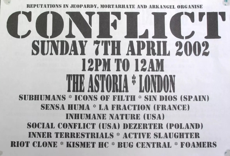 Conflict • Subhumans • Icons Of Filth • Sin Dios • Sensa Huma • La Fraction • Inhumane Nature • Social Conflict • Dezerter • Inner Terrestrials • Active Slaughter • Riot Clone • Kismet HC • Bug Central • Foamers