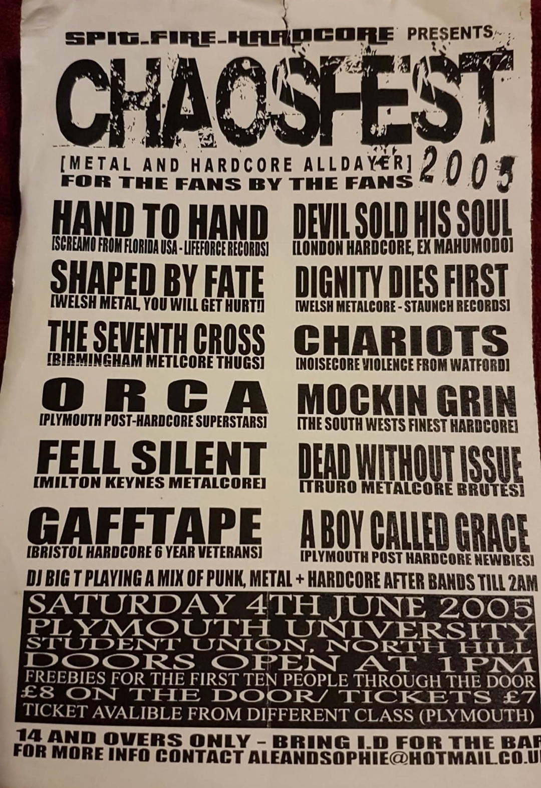 Hand To Hand • Devil Sold His Soul • Shaped By Fate • Dignity Dies First • The Seventh Cross • Chariots • Orca • Mockin Grin • Fell Silent • Dead Without Issue • Gafftape • A Boy Called Grace
