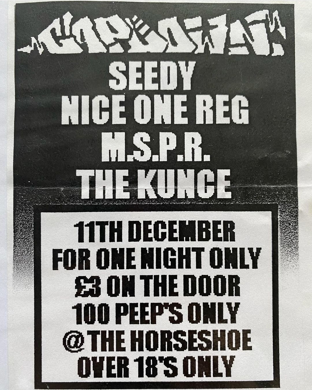 Capdown • Seedy • Nice One Reg • M.S.P.R. • The Kunce